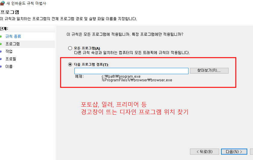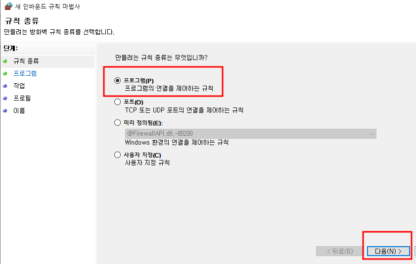 6. 규칙종류 - [프로그램]을 선택하고 [다음]을 눌러준다.
