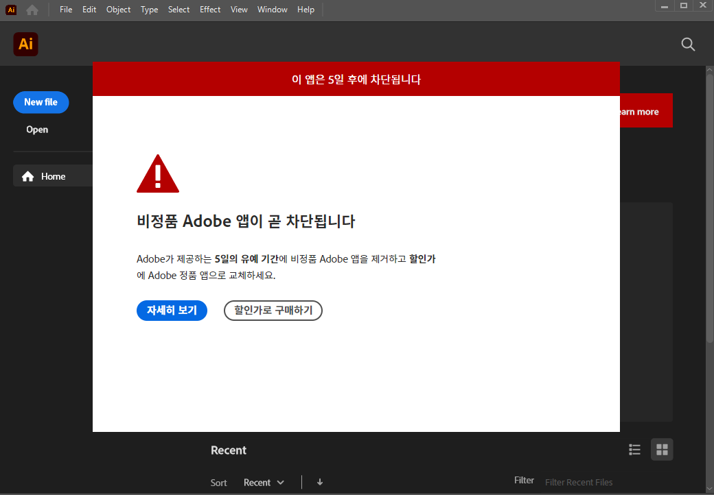 라이선스가 올바르지 않은 Adobe 앱이 곧 차단됩니다, 비정품 Adobe 앱이 곧 차단됩니다.