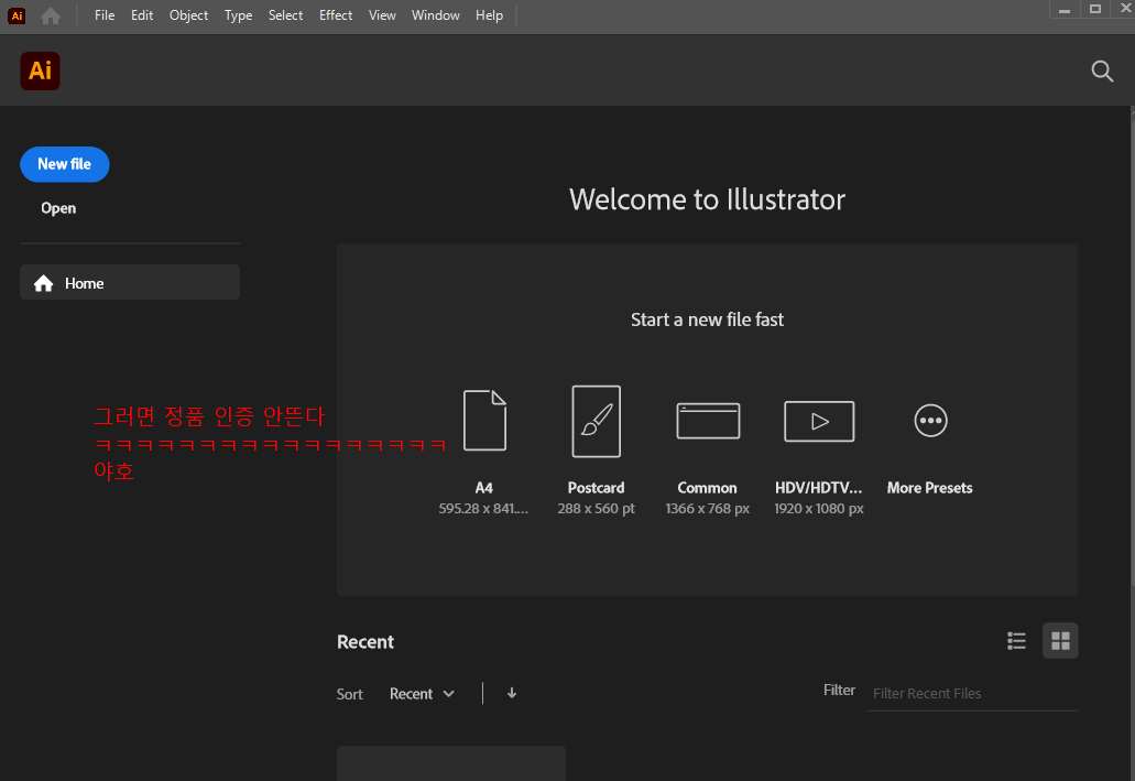 비정품 어도비 디자인 프로그램을 사용하다보면 가끔씩 아래와 같은 문구의 인증창이 뜬다.