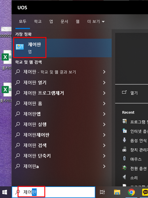 1. 시작 메뉴 검색 - 제어판 검색 후 클릭