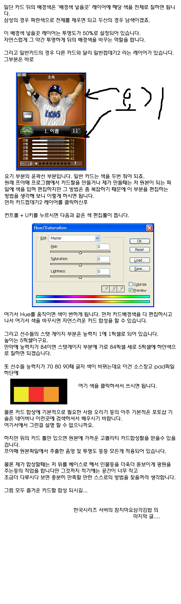온라인 PC게임 프로야구 매니저(프야매) 카드 제작 PSD 소스를 공유하려고 합니다.