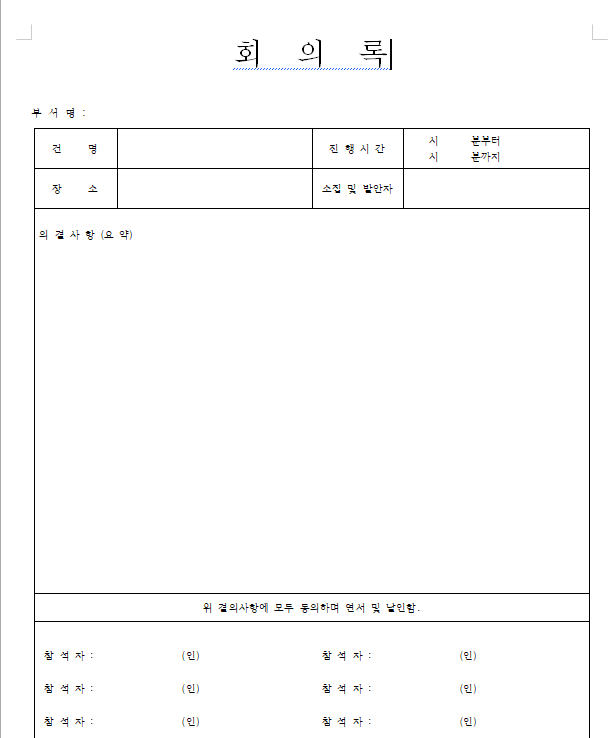 회의록 양식 1번입니다.